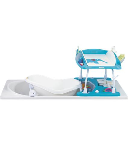 Подходит для раздельного использования. Пеленальник устойчив на любой поверхности. У ванночки есть ножки. Ванночку легко слить за счет сливного отверстия. В пеленальном столике имеются удобные полочки, емкости с крышками, для размещения средств ухода и сетка для игрушек.