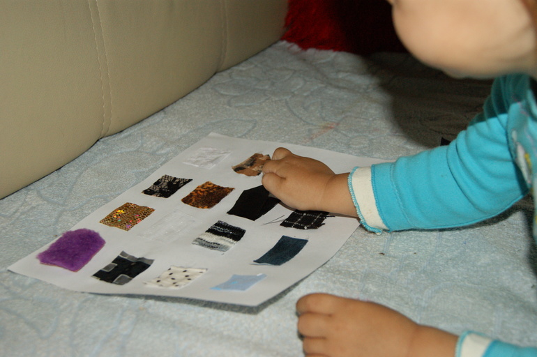 Для осязания я подготовила тактильное лото(давно собиралась),видно было,что Маше трудновато,но интересно