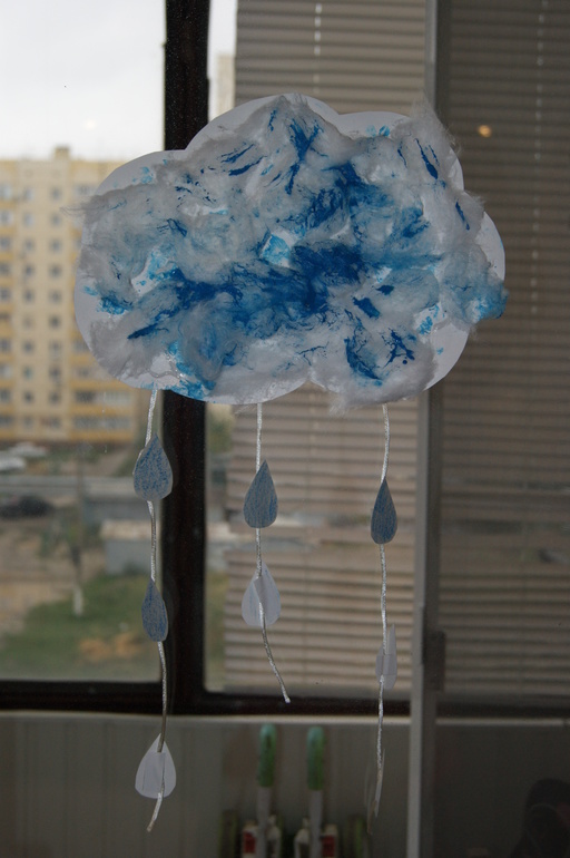 И на закуску у нас было изготовление тучки,у нас был ураганный ветер несколько дней и сильный дождь,поэтому туча была в тему