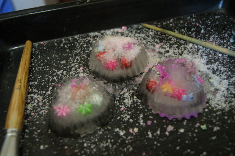 пока не прошел запал у Маши я ей дала кусочки льда с бусинками внутри,сначала раскрашивали его,потом оттаивали и доставали бусинки