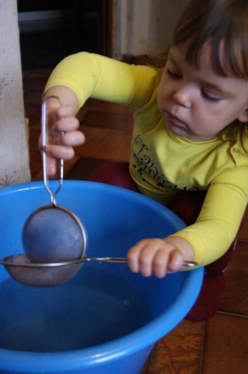 Поговорили об айсбергах,и приступили к вылавливанию льдинок в тазике с водой,Такое задание очень приглянулось Марусе,занималась этим долго и основательно