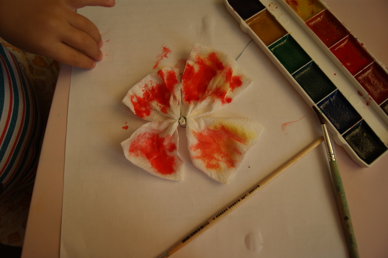У нас есть веревка ,на которую периодически Маша вешает свои лоскутки на прищепки,вчера вот опять вспомнили про это занятие
