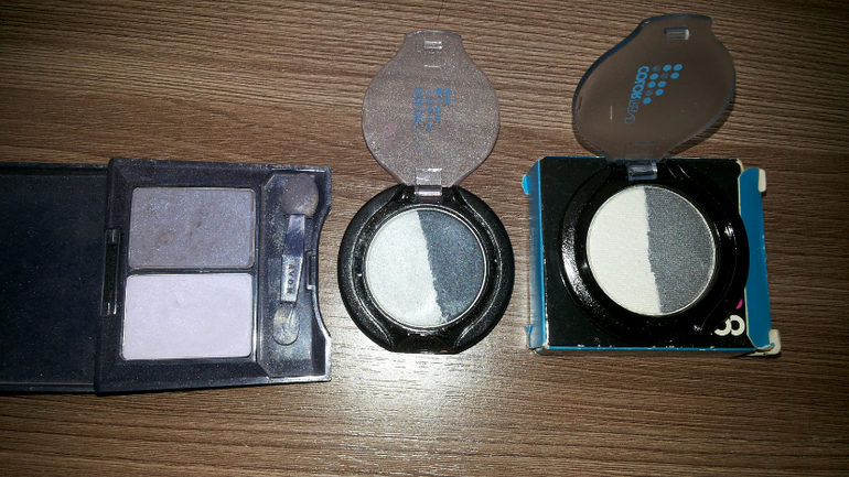 5. Тени Эйвон. Две пары (лиловый с темно-сиреневым и светло-серый с черным) - б/у, одна пара новая (тоже светло-серая);