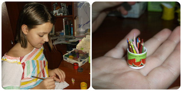 Пишу "у нас", потому что работу эту вместе с дочкой делали точнее, я только руководила. Правда, я не смогла помочь ей на защите, муж сегодня ходил с Ксюшей в школу на межшкольный этап защиты исследовательской работы. Секция технология, тема "Миниатюра своими руками".