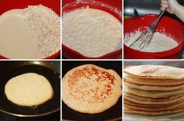 1. Смешиваем в миске манную крупу и овсяные хлопья.