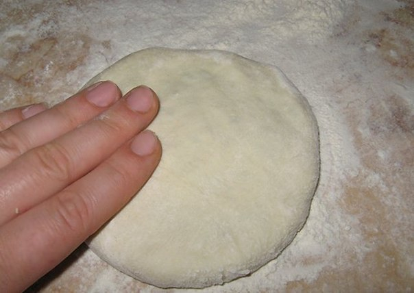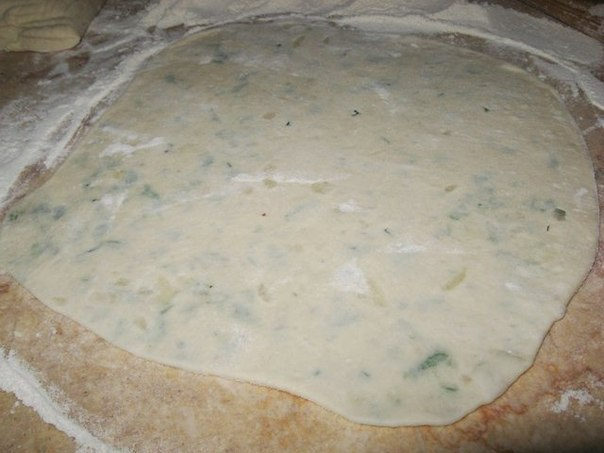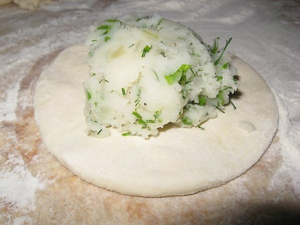 Раскатываю лепешечку и положить начинки (по объему столько же, сколько и теста)
