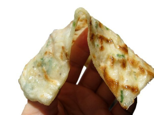 Взять в руки и положить на сухую разогретую сковороду. Пузырьки воздуха если где и будут, тоже не обращайте внимания, потом сдуются сами. Обжарить с двух сторон. Сильно не надо румянить! После жарки лепешки на сковородке осталась подгорелая мука
