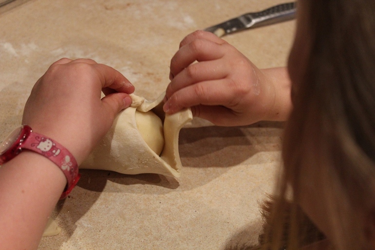 защипала и смазала яйцом.Рекомендую мамам и дочкам.