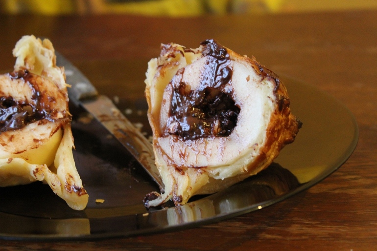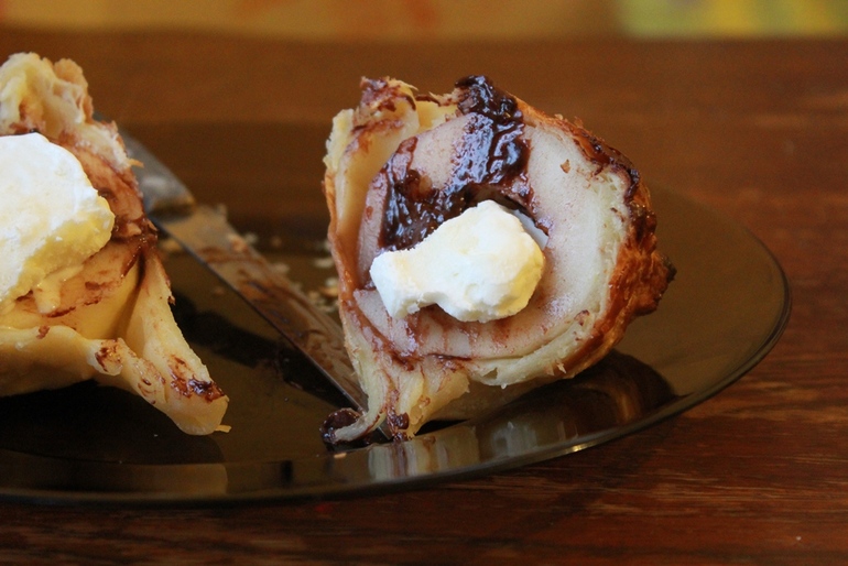 Я балансировала на одной ноге, двумя руками дотягиваясь до стопки пятилетней давности журналов "Лиза. Приятного аппетита". Там, я точно знала, есть рецепт превосходного песочного пирога с грушами, проваренными в сахарном сиропе и залитыми толстым слоем шоколадно-трюфельной начинки. Я не нашла его. Возможно, это был знак, но меня было не остановить.Т.к. главному повару всего шесть лет, решено было приготовить что-нибудь попроще и мы выбрали "груши с шоколадной начинкой в слоеном тесте".
