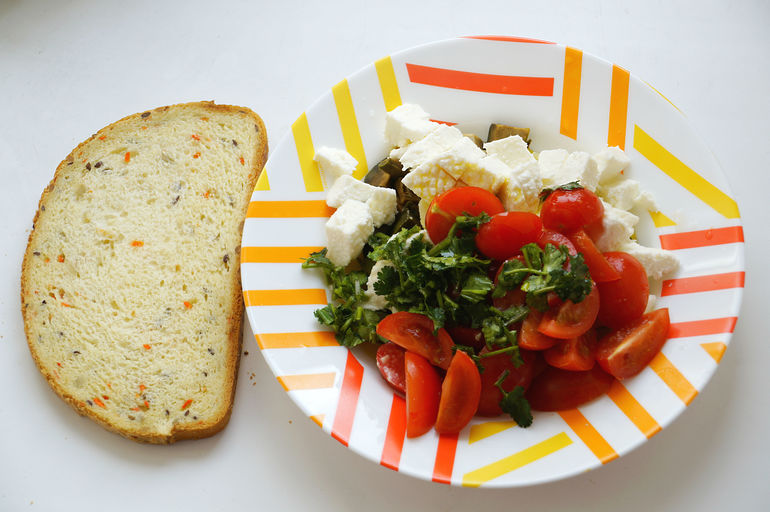 Насчёт еды- это отдельная тема, на самом деле кухня без мяса поражает разнообразием. Бывает я готовлю что то новенькое, или неделю могу есть что то практически одинаковое. Но я очень люблю помидоры и ем их каждый день. Вот например: шпинат, помидоры, Фета, зелень, огурцы