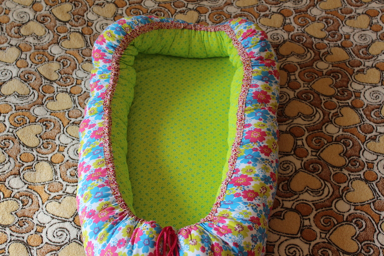 Сшила своей будущей доченьке такое уютное гнездышко, надеюсь ей там будет крепенько и сладенько спаться. Шила по мастер-классу из просторов интернета, описание не на русском, но по картинкам все понятно. Ткань - кулирка х/б, в донышке поролон, бортики набиты обрезками и не только альполюкса. Получилось оно двухсторонним, фото второго варианта под катом...