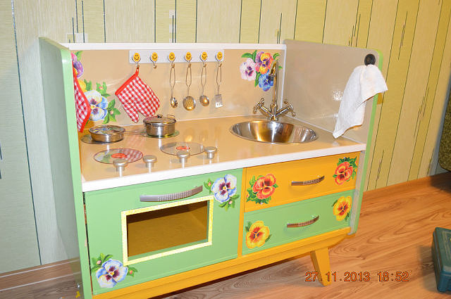 Стащила у кого-то в Одноклассниках. Какой-то папочка сделал дочке игровую кухню из старого комода. Еще фото под катом.