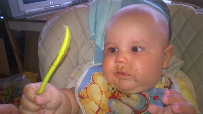 1. Очень большой промежуток с утра до обеда. Я пыталась вставить туда кашу (около 10-11), в ответ получила "пфррррр" по всем обоям и моей прическе. Ну и не подает он признаков голода, тусит себе.. Все равно пытаться накормить? Чем? Молочку до 8-9 месяцев не дают вроде..