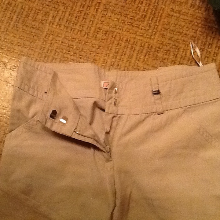 Брюки светло-бежевые ближе к белому цвету размер 42, длина по шаговому шву так же 73-75 см. Состояние новых, не ношеных. Прямые. Тоже на очень худенькую девушку или подростка.