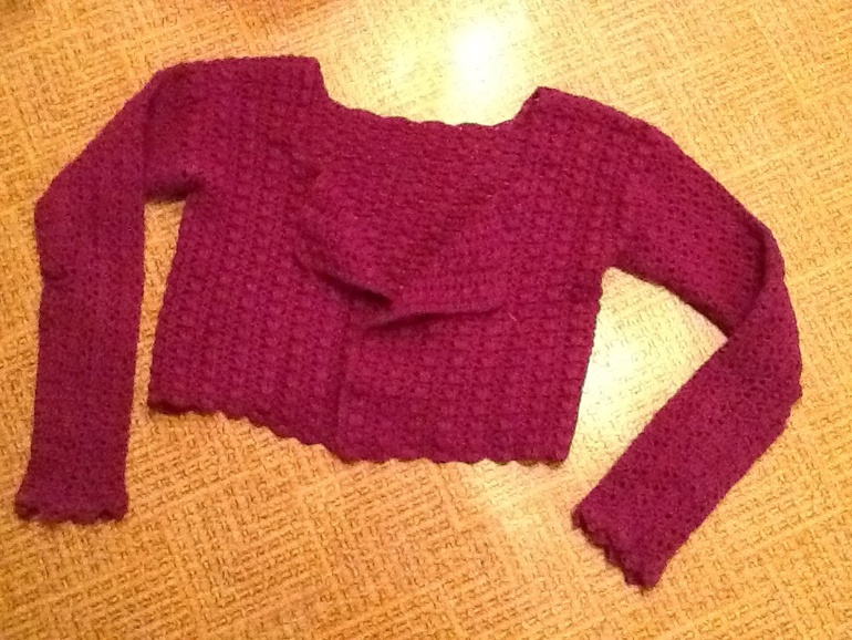 Кофточка типа болеро вишневого цвета, шерсть, теплая, без пуговиц, размер 44. Состояние на 5