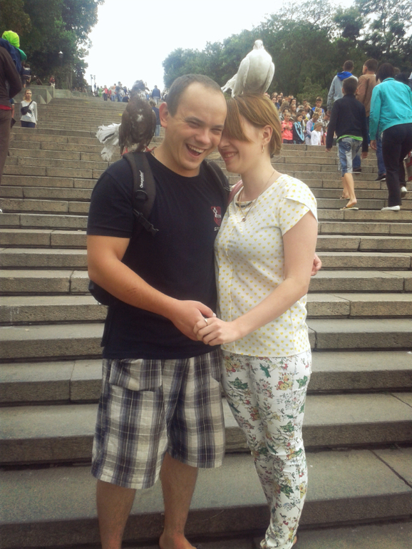 Как мне голубь в волосы вцепился!))) Потемкинская лестница