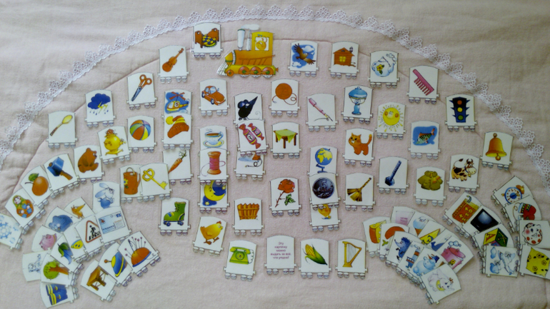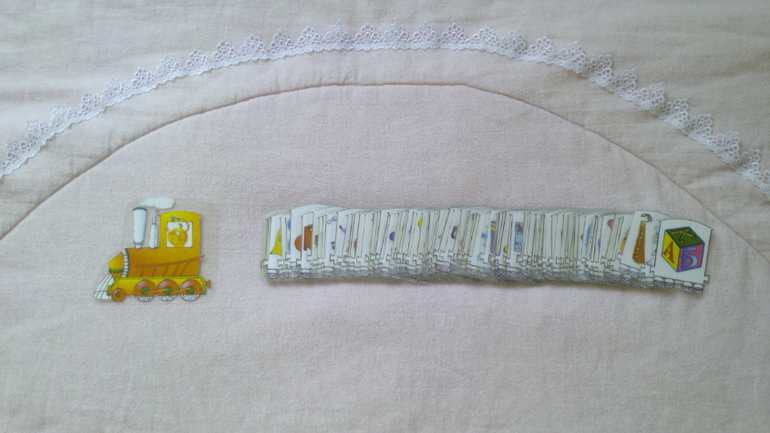 Игра состоит из множества карточек (паровоз + 85 вагончиков). К первой, изображающей паровоз, "цепляются" последующие вагончики с "пассажирами". Вагончики-карточки должны быть связаны между собой логической связью.