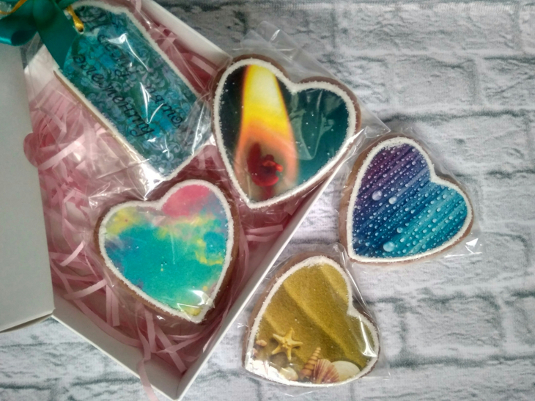 6. Сердечки Лав из с сахарной картинкой. Цена 180р