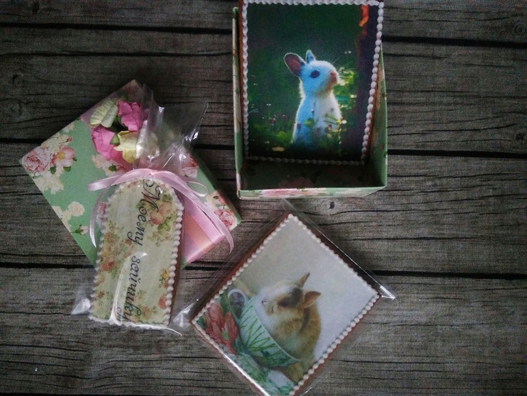 7. Набор "Моей зайке" или "Моему зайчику" с сахарной картинкой. В наборе открытка и поздравительная бирка. Цена 300р