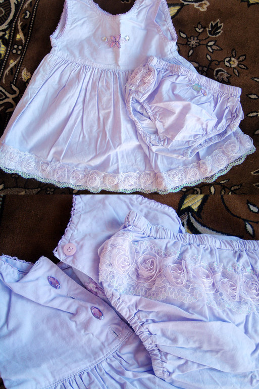 38 Комплект платье+трусики 6 мес, декорировала сама,очень нежный, трусики с кружевом на попе,200р