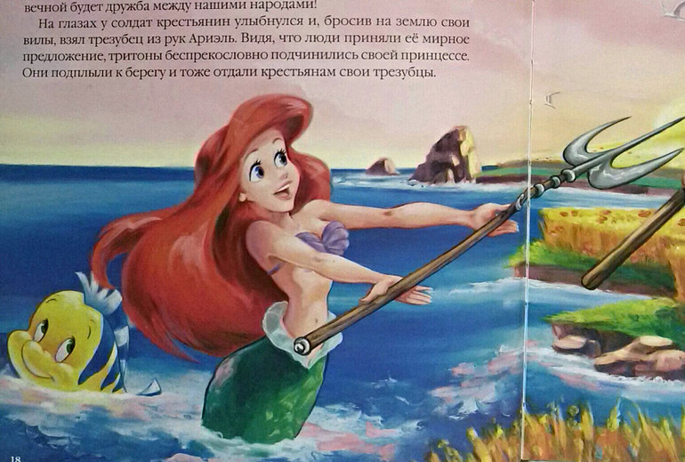 Отважная русалочка Ариэль сумела примирить крестьян и воинов царя Тритона.