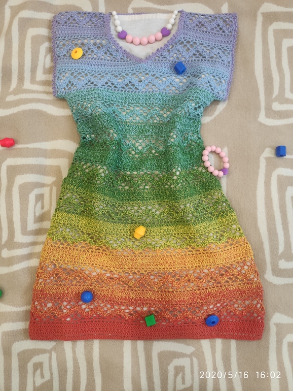 Связала платье для Ани. Пряжа YarnArt Flowers, ушел 1 моток почти полностью (осталось половина одной секции), крючок 1,5. Подкладка - хлопок
