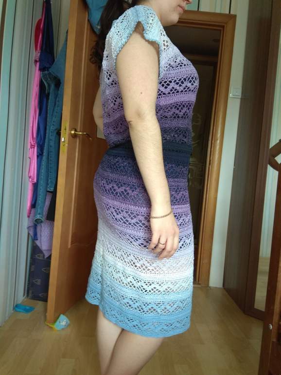 Давно хотела связать такое платье и наконец связала. Пряжа - YarnArt Flowers. Ушло 2 мотка (осталось совсем чуть-чуть от одной секции). Крючок 2.