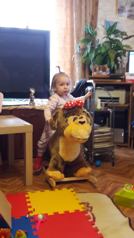 А еще в этом месяце не обошлось без неприятностей - Аня заболела. 2 недели назад у Ани появилась сыпь и температура поднялась - к вечеру до 38,3 (Аня болеет без температуры обычно - 37,4 максимум), но нурофеном быстро и хорошо сбилась. Врачи сказали что это вирусная экзантема (т.е. непонятно что). Еще 2 дня после этого у Ани была температура, но выше 38 не поднималась. Через 4 дня заболел Анин двоюродный брат (5 дней до этого мы были в гостях у них) - сыпь и температура. Ему поставили диагноз энтеровирус Коксаки. Как раз в этот день у Ани появилась сыпь на ступнях (что и бывает при этом вирусе). А братик больше ни с кем не контактировал, кроме нас, поэтому только мы могли его заразить. В общем, видимо, у Ани был энтеровирус. Сейчас уже температуры нет, но сыпь не до конца прошла. В связи с этим уже 2 недели не ходим на развивашки. А еще во время болезни Аня очень плохо спит. Вот и в этот раз 3 ночи были кошмарными. Первую ночь я вообще спала час - до 3 ночи Аня спала у меня на руках, постоянно просыпаясь и толком не спала. А потом я только лягу спать, Аня просыпается, я приду возьму, она уснет, я переложу, только лягу сама, она просыпается. Крепко умнула только под утро, но я уже не уснула. Хуже всего то, что с папой вообще не хотела укладываться. Но сейчас уже все хорошо.
