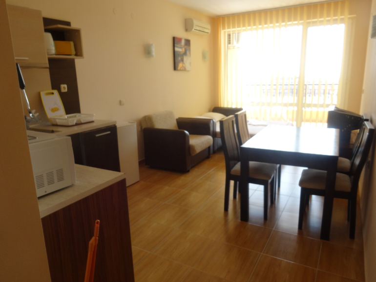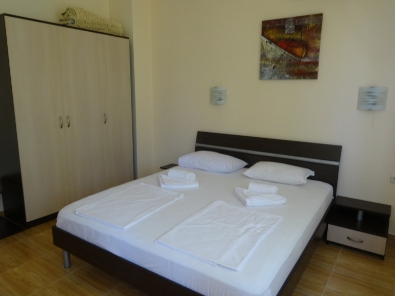 Отдыхали с 11 по 22 августа. Изначально выбирали именно апартаменты с кухней, чтобы можно было полноценно готовить и себе, и ребенку. Ни разу не пожалели, что выбрали данный вариант! Нас отдыхало 5 взрослых и 1 ребенок (2 года). Апартаменты были двуспальные, с совмещенной ванной и туалетом, с кухней, в которой располагался раскладной диван и раскладное кресло. Поскольку мы были с ребенком, то хотели взять детскую кроватку (такая опция предоставляется в данном отеле). Но когда увидели раскладное кресло, то просто поставили его в свою спальню параллельно кровати, и от кроватки отказались. Стоимость кроватки в сутки - 5 евро, если забронировать заранее, то дешевле. На кроватке у нас получилось сэкономить 60 евро.