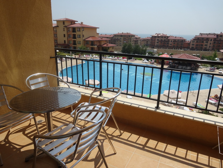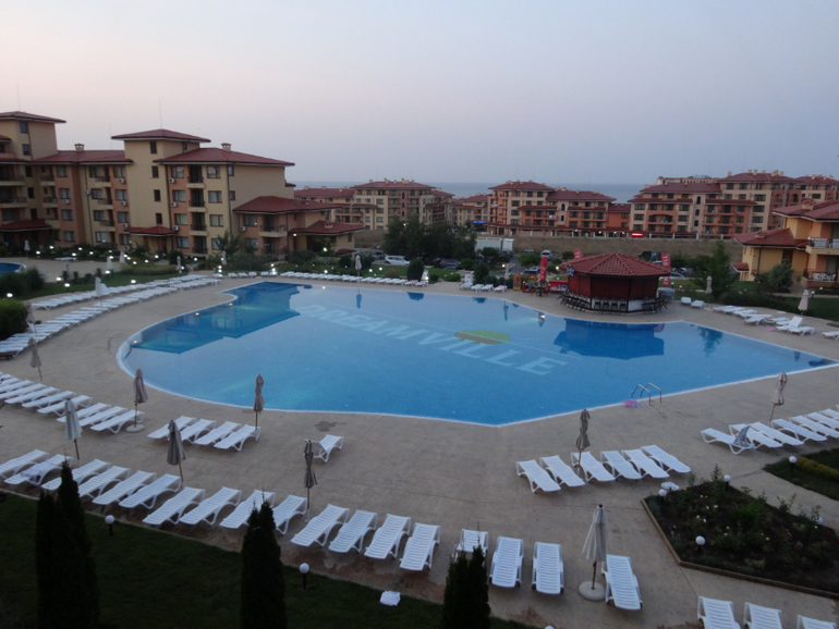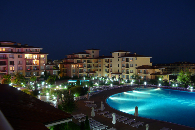 Отель находится немного на окраине города, до центра идти минут 15 пешком. В центре куча сувенирных магазинчиков, почта, площадь, на которой иногда проходят выступления по вечерам, ресторанчики и приятные кафе. Один раз мы даже дошли до разрекламированного района Марина Деневи (ничего особенного не увидели). Достопримечательностей в городе нет. Советую посетить старый город в Несебре, от Святого Власа - 20 мин. на автобусе, ну и возможно будет интересно побывать в Парке аттракционов на Солнечном Берегу.