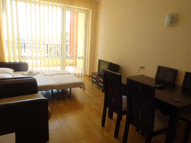 На территории отеля есть неплохой ресторан (цены немного выше среднего), коктейль-бар, 2 бассейна (взрослый и детский), бесплатные лежаки и зонтики, парикмахерская (платно), массаж и косметология (платно), фитнесс зал (платно), бильярдный стол, парочка игровых машин для детей (за 1 лев), небольшая детская игровая площадка.