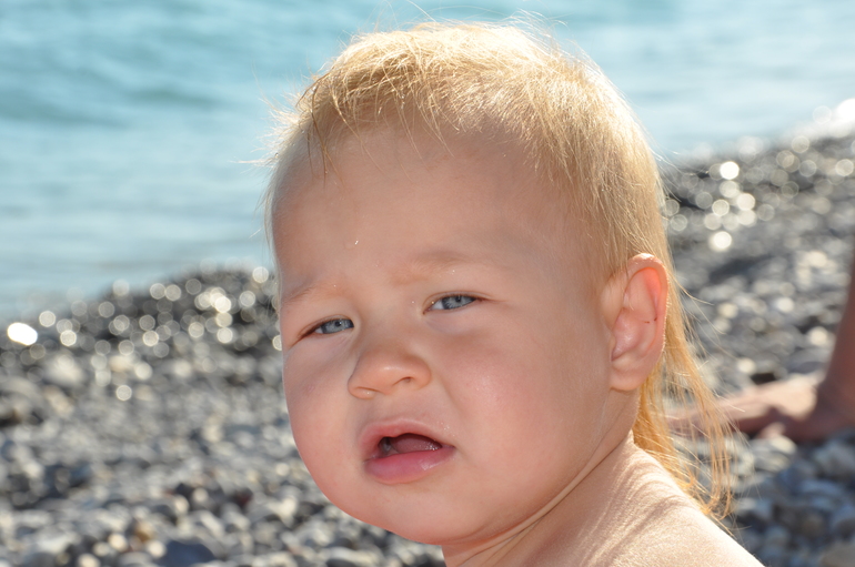 Пляж галечный, выходить из воды не очень удобно, я обычно просила мужа кинуть шлепки, одевала в воде и спокойно выходила. Море теплое, но для маленького ребенка прохладно, в воду мы ее так и не смогли затащить. Ставили рядом бассейн, набирали воды и когда вода нагревалась, то ребенок с удовольствием плескалась и кидалась камнями.