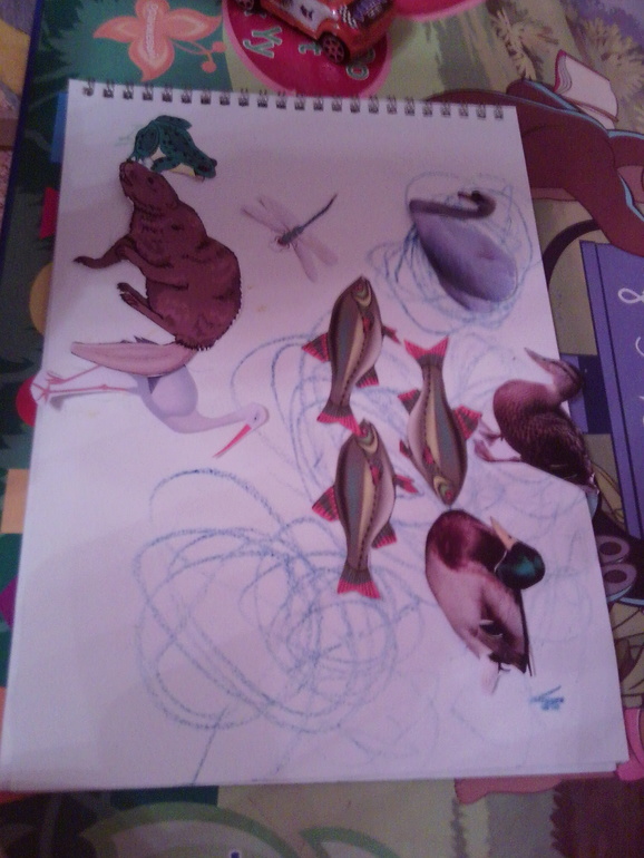 Потом мы наклеили жителей нашей чудесной впадины, вспомнили их названия. Бобра почему-то не узнали, Филя сказал, что это мишка, а лебедя обозвал пеликаном )))