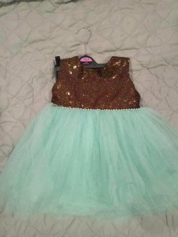 Продам Новогодние платья.На девочку 1,5-2 года Верх шоколадные пайетки, низ нежно бирюзовый сатин. Состояние идеальное, шили на заказ, б\у несколько раз. 950 р
