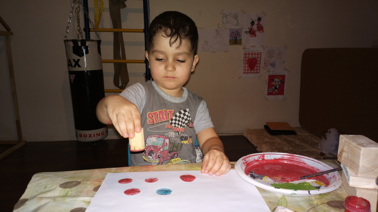До остальных геометрических тел мы не дошли, т.к. юный художник увидел в отпечатках