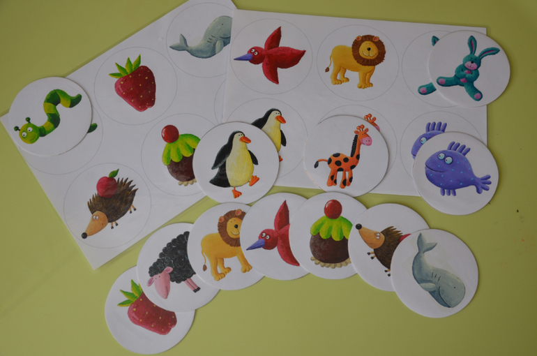 В это играем так: Беру 3 карточки раскладываю по порядку называя их. Потом переворачиваю их рубашкой вверх. И спрашиваю, к примеру "где тигр?". Играли много, ошибся за все время раза 2.