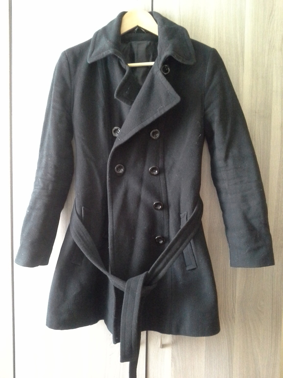 14. Пальто, черное, женское, утепленное, шерсть, кашемир, осень - теплая зима, активно ношено, 44. Бронь Алена.