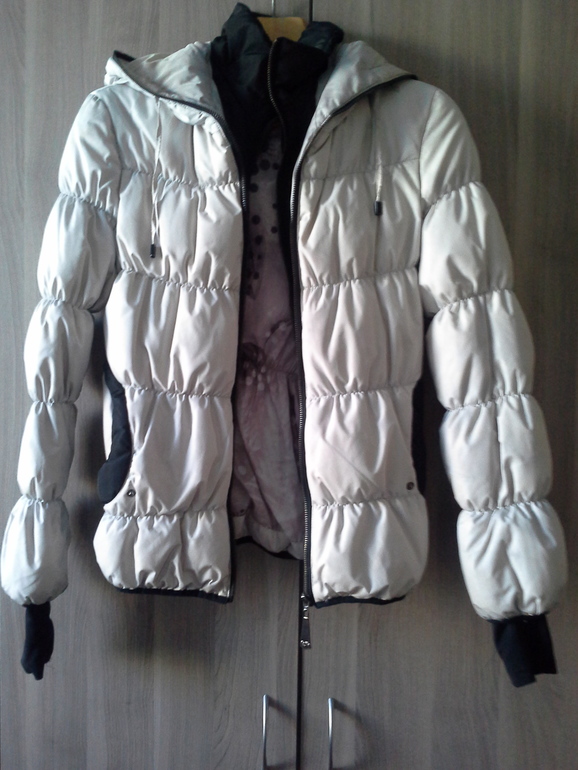 26. Куртка пуховик, бежевый, после стирки приобрел серый оттенок, требует стирки, пух перо наполнитель, 42-44. ОТДАНО Таня