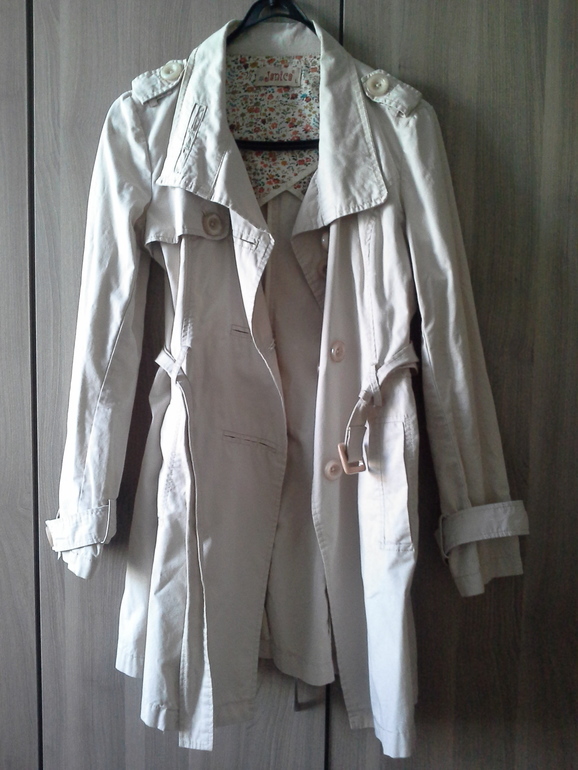 24. Тренч плащ, бежевый, хлопок, ношено мало, без подкладки, летний вариант., 44-46 отдано Таня