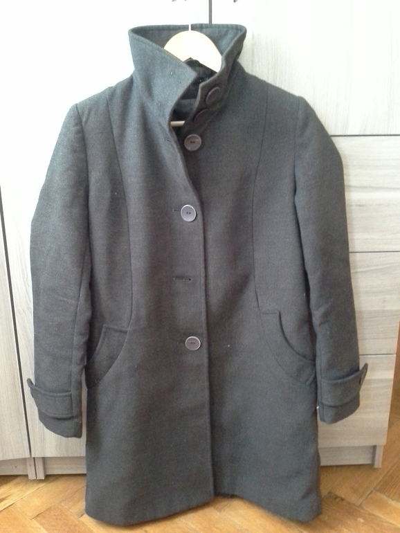 15. Пальто женское, серое, осеннее, неутепл., активно ношено, но еще вполне ничего. 44