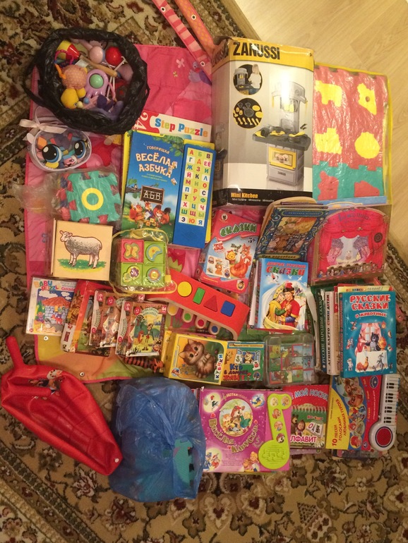 Начну с того, что моя подруга из Санкт-Петербурга прислала нам более 30 кг посылку с игрушками, книжками и пр.