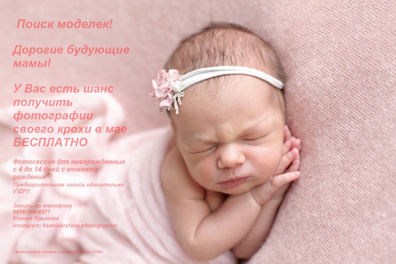 Мамочки, если Вы или Ваша подруга ждете малыша, у меня есть предложение по бесплатной фото-сессии новорожденных. С меня: памятные фотографии (2-3 образа) сейчас абсолютно бесплатно!