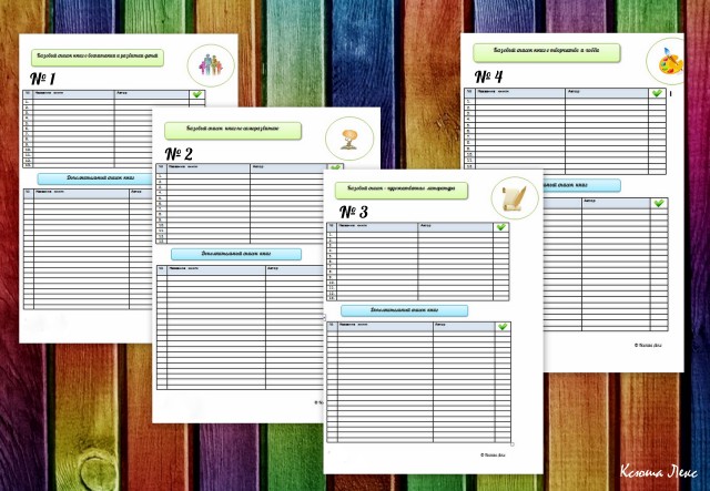Я составила 4 бланка, в которых можно записать базовые и дополнительные книги. Они конечно, отвечают моим предпочтениям, но если вас, что-то из этих бланков заинтересовало, то их можно тоже скачать, распечатать и заполнить.