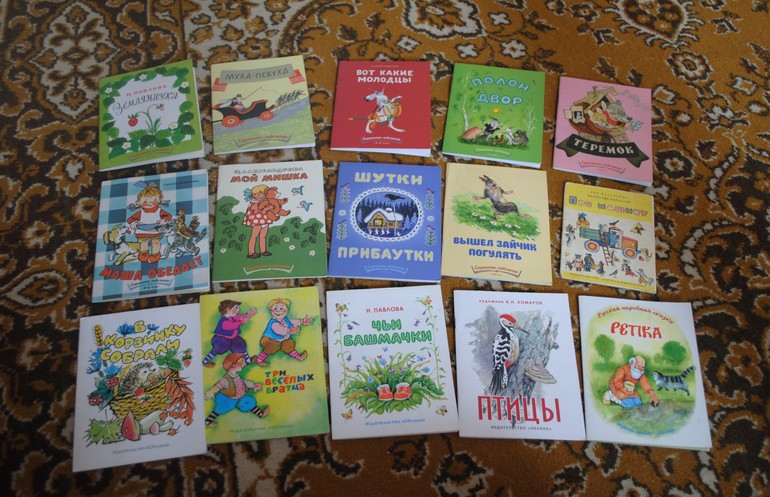 Стопка невеличек. У Тси их много, а вот у Юрика только эти. Все любимы. "Полон двор" только слишком мелкие картинки, темные. "Про машину" с Канашевичем бука.