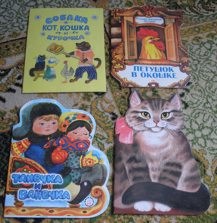 Котика купила сразу, как вышла книга. Показала маме, оказалось, у меня в детстве такая была. Не помню, но в подкорках, видать впечаталась книга. Такой родной котик... Слышала, что у многих распадалась книга. С нашей за 3 года чтения ничего не случилось, только уши помялись. "Собака, кот, кошка и курочка" первая тонкая кнжка у дочки была. Думала, не выживет, а по ней и не видно особо, как странички учились переворачивать. Петушок славный. Вроде, ничего особенного, а Юрик любит.