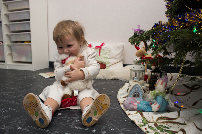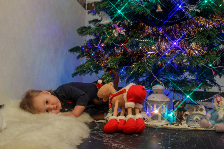 Очень я переживала на счёт того, будет ли она тянуть игрушки, гирлянды, мишуру. После того, как ей пару раз сказали что "трогать можно, а тянуть нельзя", ребенок вроде бы понял, и ничего не уронила и не разбила)) правда однажды я обнаружила парочку мягких мишек аккуратно сидящих на полу рядом с ёлкой, но все остальное было на месте, да и случай был единичный))