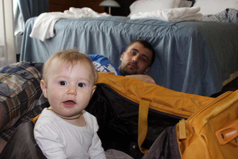 Дело было в середине июня, стояла прекрасная и теплая погода, но за день до отъезда жутко похолодало. Поскольку это было наше первое путешествие куда-либо на несколько дней и неясная погода с еще более неясными перспективами,то я набрала полную сумку разного шмотья...когда я заглянула в её комод, то обнаружила что оставляем дома только пару боди и одну курточку и это из всего изобилия, которым пышет гардероб моей дочки в любом её возрасте, ибо мама - шопоголик детских вещей)