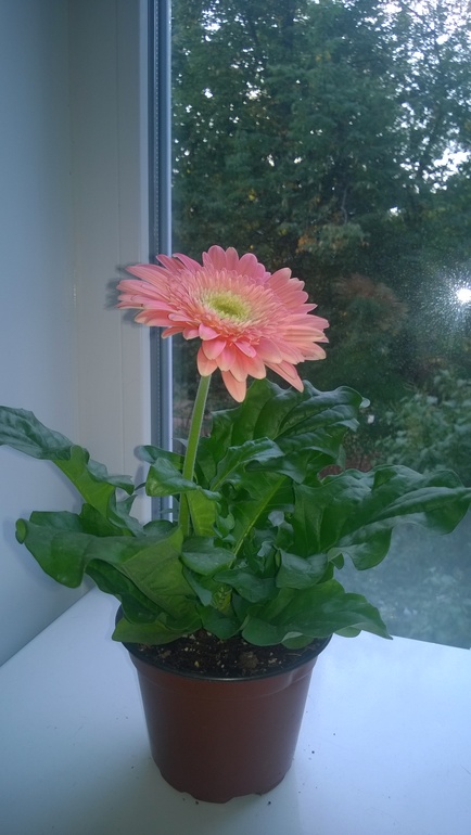Девушки, подарили мне цвет. Название содрали вместе с ценником. Цвет похож на гербера, может комнатная... Как за ним ухаживать, подскажите кто знает