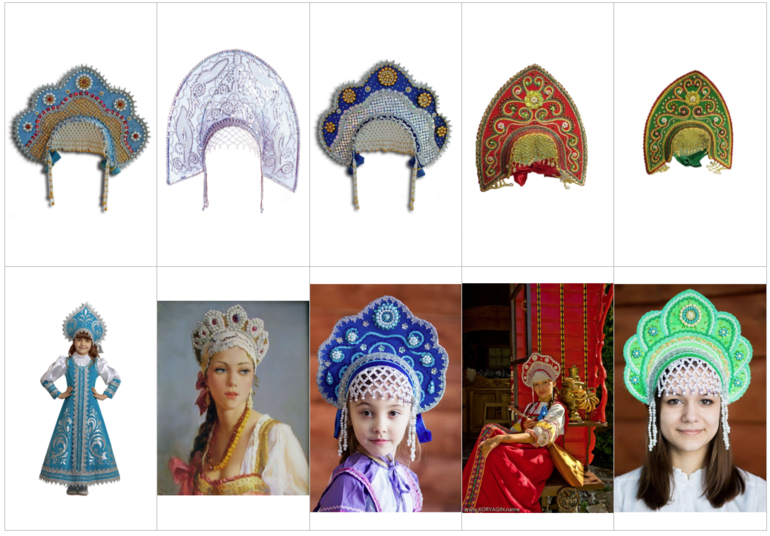 3. Цветовосприятие с кокошниками - картинка кокошника и деквушка в кокошнике схожего цвета.