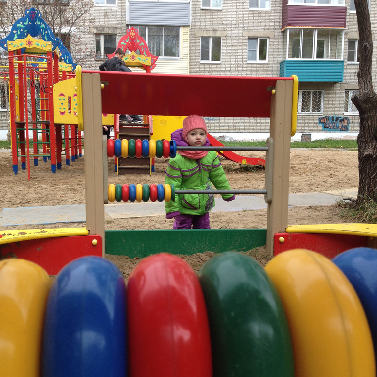 4) на улице любимое занятие - это горки. Не пропустит ни одну "ботю". Но уже настали холода, горки чаще всего мокрые ("ботя мотя") и холодные, поэтому приходится гулять просто по улицам и паркам.